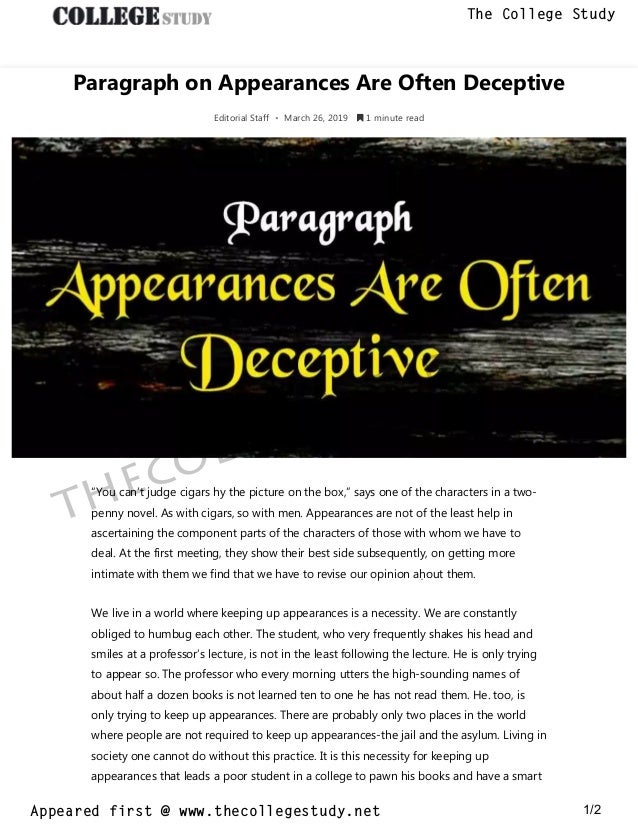 Lyrics to looks are deceiving by damian junior gong marley from the stony hill album oh looks are deceiving you now don't you underrate yourselves, no oh looks are deceiving you now don't. But it was no use. Found 210 sentences matching phrase looks can be deceiving..found in 14 ms. Story editor april 4, 2010 christianity, lessons, life leave a comment 9,765 views. Looks does not matter at all.